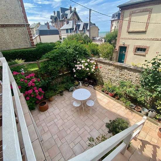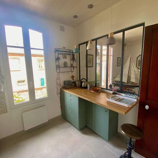 Maison dans la rue principale de Houlgate, d’environ 70 m2, entièrement restaurée comprenant une entrée distribuant un salon salle à manger avec accès balcon et cour intérieur, une cuisine aménagée et équipée et wc séparée, au niveau -1 une chambre (lit 160 (2x80)), une chambre (lit 140) en accès cour, une salle de douche avec machine à laver et w-c. Location pour 4 personnes à réserver vite ...
