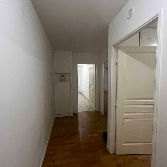 Rue du Capitaine Ferber, Métro Mairie d'Issy, immeuble de 2005 de standing avec gardien, situé en entresol (rez de chaussée surélevé), appartement composé d'une entrée, dégagement avec placard, salle de bains, wc séparés, deux chambres avec placards, cuisine indépendante, vaste séjour d'angle, chauffage et eau chaude individuel électrique, cave et parking en sous-sol
