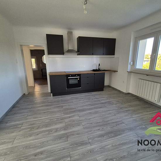 A Kerbach, cet appartement de 3 pièces au 1er étage d'1 maison divisée en 2 appartements, totalement rénovée, vous propose : 1 entrée avec escalier menant au 1er étage et 1 accès direct à la cave, 1 dégagement, 1 cuisine équipée neuve avec plaque à induction, four et hotte (emplacement prévu pour un lave-vaisselle) de 16 m², 1 séjour lumineux de 16 m², 2 chambres de 9 à 11 m² dont 1 avec placard sur mesure, 1 salle de bain de presque 10 m² avec wc, 1 bureau. Vous bénéficiez d'1 cave et 2 places de stationnement privatives ainsi qu'1 jardin à...