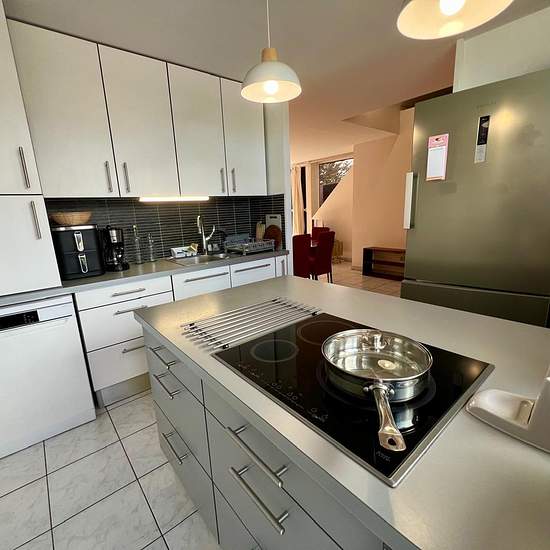 ETANG SALÉ LES HAUTS centre ville proche Eglise - Appartement T3 MEUBLÉ de 67m² au 4ème et dernier étage avec acscenseur . Composé d'un séjour climatisé ouvert sur terrasse, une cuisine équipée et aménagée (réfrigérateur, micro-ondes, Airfryer à 2 tiroirs, plaque à induction 3 feux, lave vaisselle), une salle d' eau avec douche à l'italienne, 3 placards de rangement, machine à laver), deux chambres (un lit de 160x200), et la seconde chambre aménagée d'un lit gigogne (90cmx200cm et 80x190 cm), un wc séparé avec lave-mains. Un BOX aménagée de ...