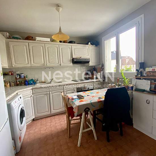 Dans un cadre très agréable, ce logement offre entrée, cuisine aménagée/équipée (four, plaques, hotte), grand séjour avec balcon (vue sur parc boisé) pouvant être divisé pour faire une chambre supplémentaire, salle de bains, Wc séparé; deux belles chambres dont une avec balcon. ADEME : 1641E0387379Z Cave, place de parking en souterrain. Local vélo à disposition. Possibilité stationnement sur parking aérien. Chauffage et eau compris dans les charges. Contacter Honorine PEAN au zéro sept pour obtenir des informations complémentaires ou visiter.