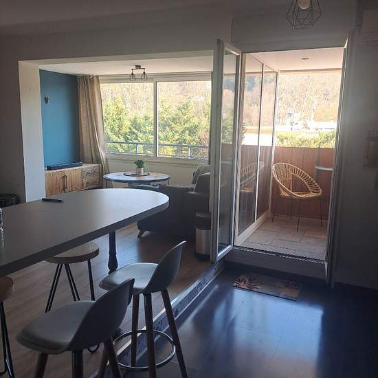 Résidence La Verrerie, appartement au 2ème et dernier étage (sans ascenseur) T3 de 53.8m2 entièrement meublé comprenant: un séjour avec coin cuisine aménagée et équipée, un dégagement avec deux chambres avec placard aménagé, salle d'eau, WC indépendant, placard. Une petite terrasse. Loyer 870 euros + 60 euros (charges: eau froide et charges communes) soit: 930 euros .