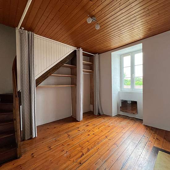 Situé à la campagne de La Roche Sur Yon, dans un cadre agréable, appartement en duplex de 59m2 comprenant : entrée, salon-séjour, cuisine ouverte aménagée, cellier, salle de bains, WC, une chambre et un bureau. Parking. Loyer mensuel 520 euros Dépôt de garantie 500 euros Frais d'agence 450 euros dont 177 euros pour l'état des lieux.