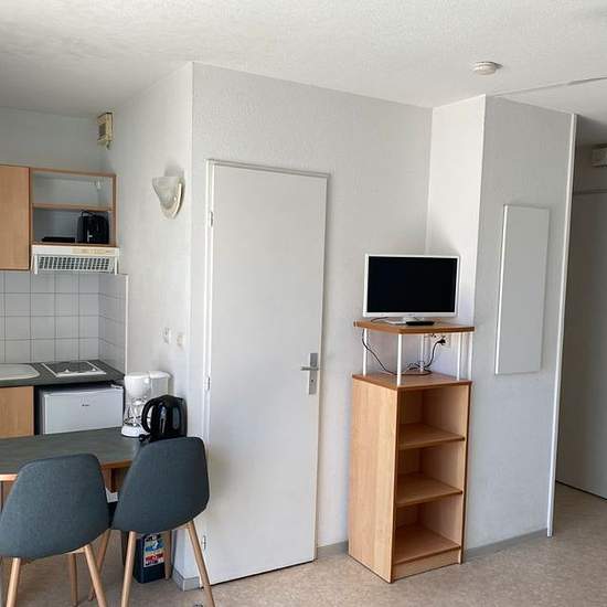 Appartement de 32 m² à louer sur La Rochelle L'appartement est situé à 5 minutes du centre ville, proche de la plage des Minimes, près de la gare et de l'aquarium de La Rochelle. Il se trouve dans une résidence sécurisée, avec place de parking privée avec badge et local à vélo. Le secteur résidentiel est calme tout en étant proche des commerces. La superficie de l'appartement est de 32 m². Il se trouve au 2ème étage avec ascenseur, se compose d'un séjour avec cuisine équipée (plaque vitro céramique, micro ondes, frigo avec partie congélateur...
