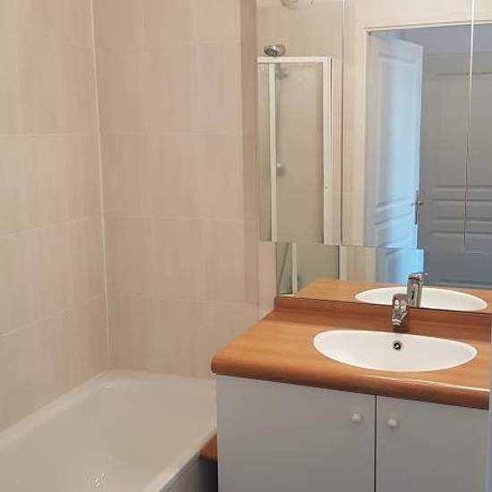 Lagny-sur-Marne – Rue Saint-Laurent In a recent high-end residence, on the garden level, a 3-room apartment comprising: tiled entrance, kitchen, living room with a 16.64 m² terrace overlooking a 56 m² garden, two bedrooms with built-in closets, bathroom and WC. 1 underground parking space – a cellar. Individual electric heating; cold water is included in the charges and metered. Available from January 30, 2026.