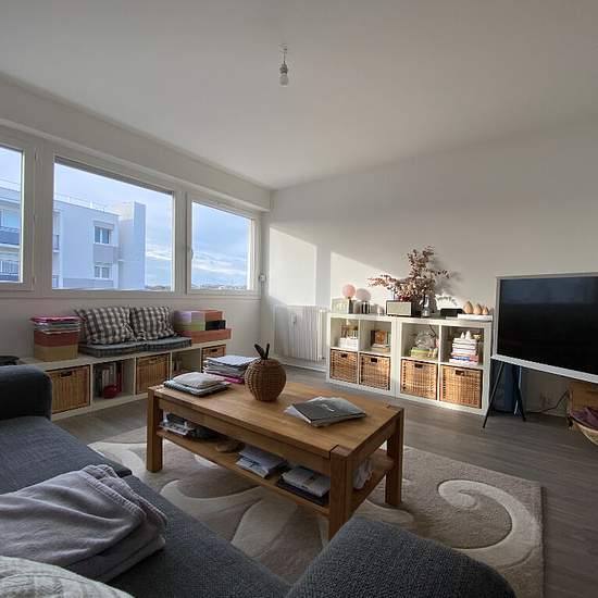 Appartement de type 3 idéalement situé au 4ème étage avec ascenseur dans la Résidence du Parc à Laval. L'appartement comprend une entrée avec divers placards de rangements, un salon séjour, une cuisine aménagée et équipée indépendante (four, plaques, hotte, réfrigérateur/congélateur, un lave vaisselle), un dégagement dessert 2 chambres, un dressing , une salle d'eau avec branchement MAL. Vous disposerez également de 2 balcons accessible par les chambres, une cave et une place de parking. Le loyer de 770,00 inclus la consommation d'eau chaude...