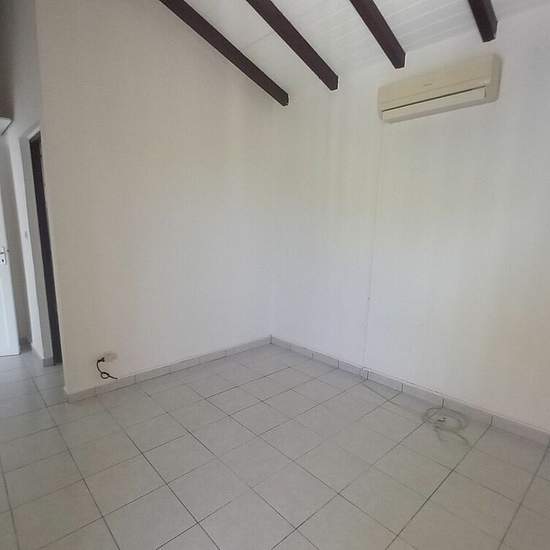 Appartement en haut de villa non meublé type T3. Appartement en haut de villa non meublé type T3, composé d'un séjour en L, une cuisine ouverte aménagée et équipée, deux chambres climatisées dont une suite parentale avec sa salle d'eau/wc et une avec accès terrasse, salle de bain avec wc, une terrasse couverte en L à l'avant avec vue mer, une terrasse non couverte et un carbet à l'arrière. Possibilité de se garer à deux à coté de la citerne tampon. Eau et électricité compris dans le loyer. Disponible de suite.