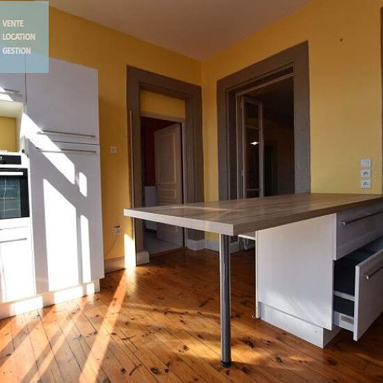 Le Puy rue de la Gazelle secteur grande poste et gare appartement double orientation F3 85 m² cuisine équipée récente séjour-salon 2 chambres 2 salles d'eau dont une avec wc divers rangements chauffage individuel gaz isolation PVC 2 emplacements voiture dans garage + 1 cave bon état général proximité immédiate centre ville arrêt de bus et commerces libre 1er Mars.
