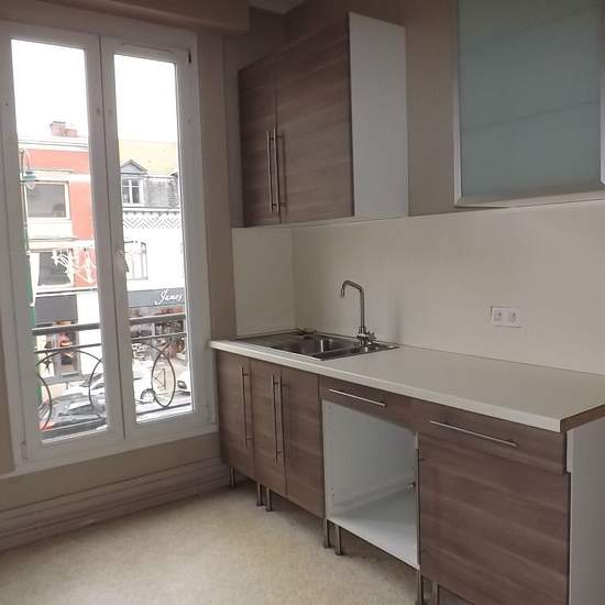 LENS - Centre ville - Appartement T3 comprenant entrée avec placard, 2 chambres, salle de bains, WC, cuisine meublée, séjour avec loggia. Charges: 90 euros /mois avec régularisation annuelle. Dépôt de garantie :581 euros Honoraires charge locataire: 467.48 euros Honoraire d'état des lieux 160 euros / Réf: 1126