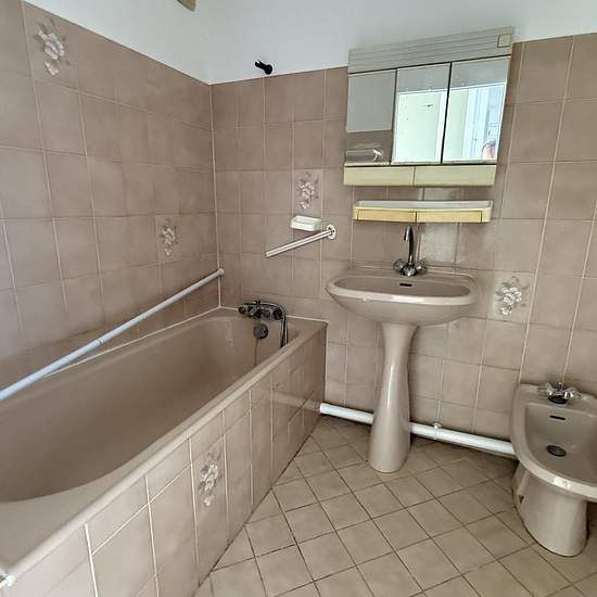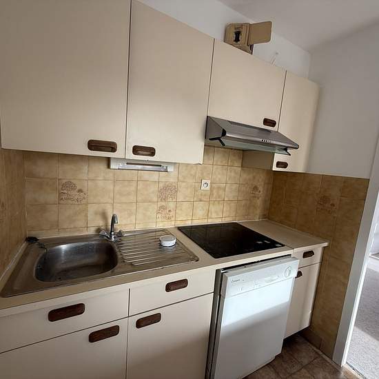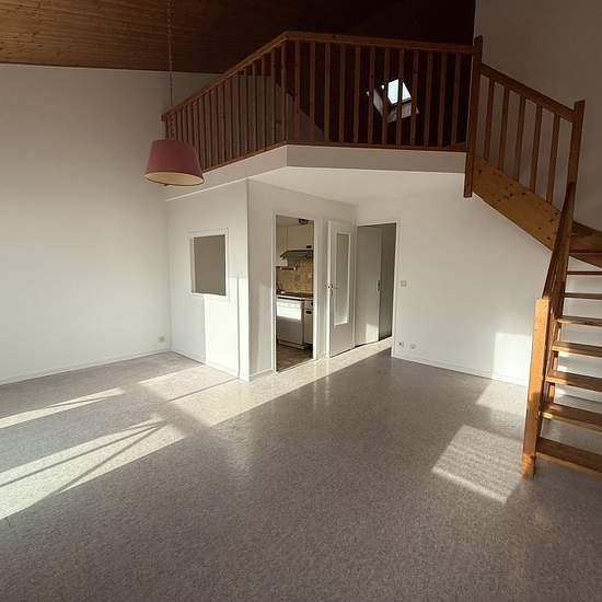 Appartement T3 comprenant : entrée ave placard, séjour ouvrant sur balcon, kitchenette, une chambre avec placard, salle de bains, wc et une mezzanine. Cave.