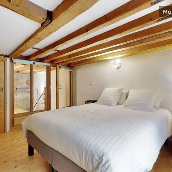 Rent including all charges and taxes: water, heating, electricity, gas, Internet, Wifi, monthly cleaning ... 2-bedroom flat of 93 sqm Charming flat: stone walls, exposed beams With access to the inner courtyard from the kitchen Ideally located at 15 min walk from Place Bellecour On the ground floor of a building secured by intercom and digicode Entrance located in the kitchen: coat rack, shoe cupboard Separate kitchen: table, 5 chairs, single sink, 3-burner induction hob, microwave oven, multi-function oven, dishwasher, fridge/freezer, elect...
