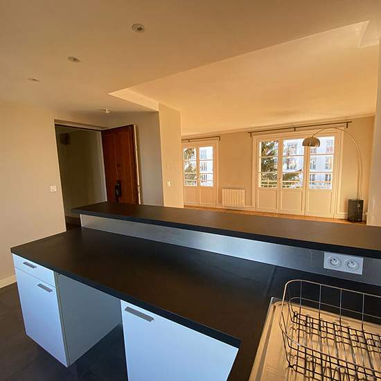 On the 5th and top floor of a beautiful residence on the heights of the 5th arrondissement, discover this dual-aspect apartment of 70.23 m², offering plenty of natural light and a functional layout. It comprises a spacious living area of 39 m² with a lounge opening onto a large continuous balcony with no overlooking neighbours, and a semi-fitted open kitchen (upper and lower units, hob, extractor hood). The sleeping area has 2 bedrooms of 10 m², a shower room with laundry space, and separate toilet. You will also benefit from a 9 m² cellar o...