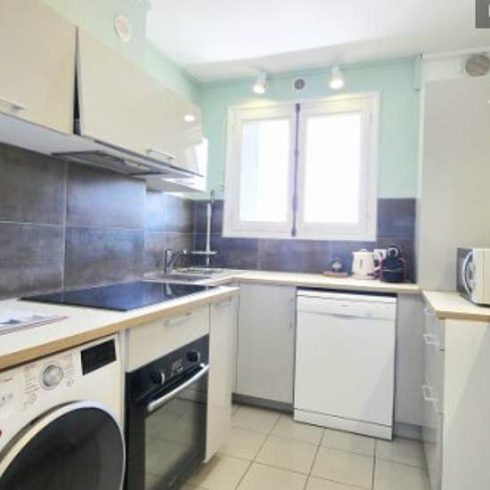 Équipement et distribution des pièces : Cuisine avec plaque induction, four électrique, four micro-ondes, lave-vaisselle, réfrigérateur, lave-linge séchant. Espace salle à manger avec table, 4 chaises, buffet Vue sur la cathédrale Saint-Jean Salon avec armoire, canapé, meuble TV + TV, table basse, TV LED 80 cm Vue sur la colline de Fourvière et la basilique Chambre 1 avec lit double de 160/200, grande armoire avec penderie et étagères, table console Vue sur la cathédrale Saint-Jean Chambre 2 avec 2 lits simples de 90/200 (réunissables en lit...