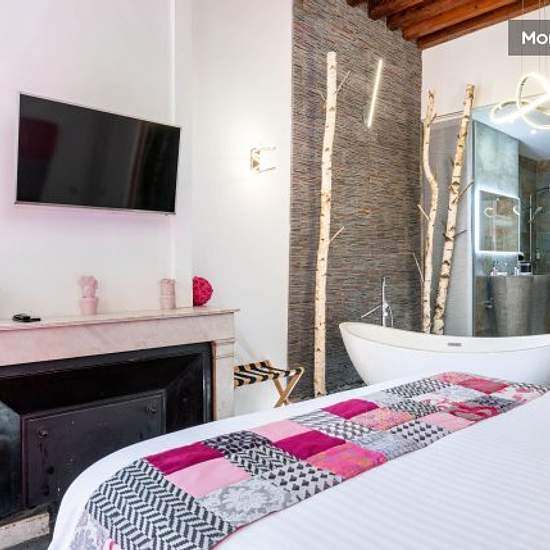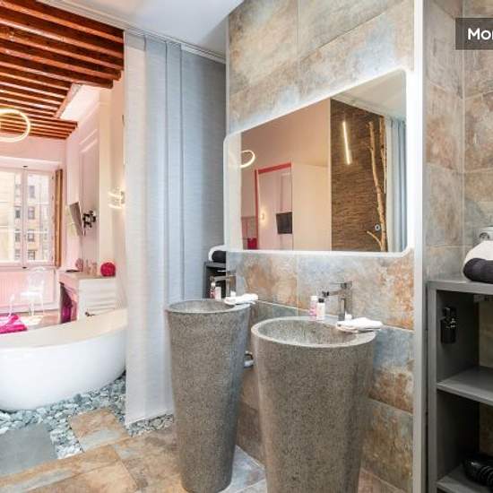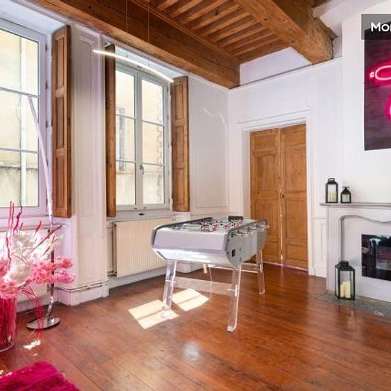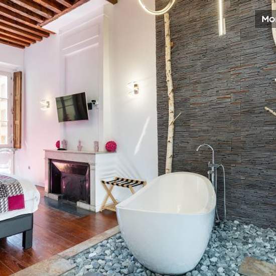 Featuring a spa bath, the XVI de la Rose is located in Lyon, on the 1st floor of the famous Tour Rose. It offers a view of the city and free Wi-Fi throughout. This flat has 2 bedrooms, a fully equipped kitchen with dishwasher, oven, hob, fridge, freezer and microwave, 2 flat-screen TVs, a bright living area with fireplace and a contemporary bathroom with walk-in shower, bath, stone double washbasin, linen and hairdryer provided. You are 600 metres from the Roman Theatre of Fourvière and the Notre-Dame Basilica. The Fourvière Cathedral is les...