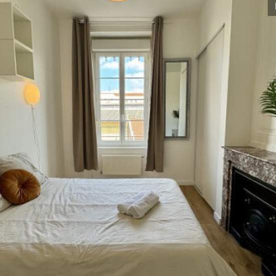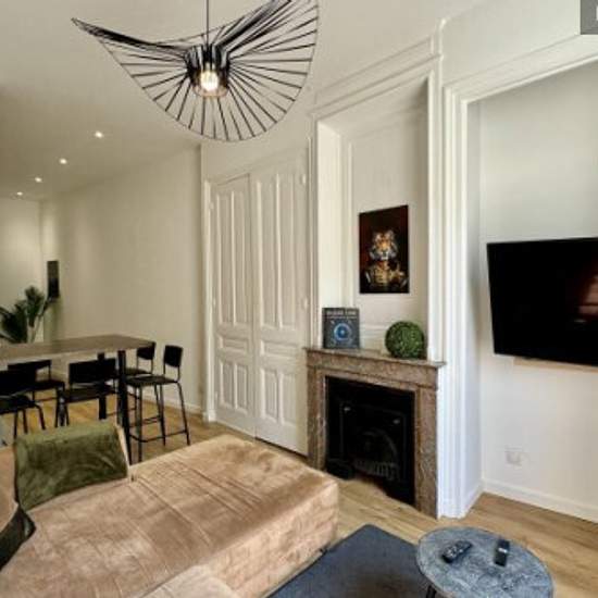 T3 moderne 70 m² – 2 chambres, 2 bureaux – Quartier Saint-Louis Lyon 7ᵉ – À deux pas de la Place Saint-Louis, dans un quartier vivant, agréable et recherché. Ce T3 meublé de 70 m², au 2ᵉ étage (sans ascenseur), est conçu pour offrir confort, calme et praticité, le tout dans un style moderne et design. Agencement idéal Chambre 1 : lit double, bureau, salle d'eau privée Chambre 2 : lit double, bureau Cuisine ouverte et équipée (four, plaques, lave-vaisselle, Nespresso…) Salon confortable avec TV Full HD et enceinte Bluetooth Salle de bains ind...