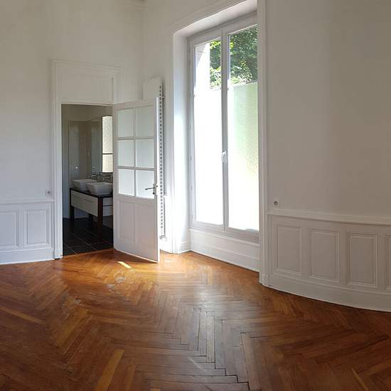 Rez-de-jardin dans une maison bourgeoise, à deux pas des Quais de Saône, appartement T4 de 96.32m². Situé au rez-de-jardin, il se compose d'une entrée, une cuisine aménagée/équipée, un séjour, un salon, trois chambres, une salle d'eau et une salle de bains, toilettes séparées et une buanderie. Jardin d'environ 200m², stationnement dans cour.