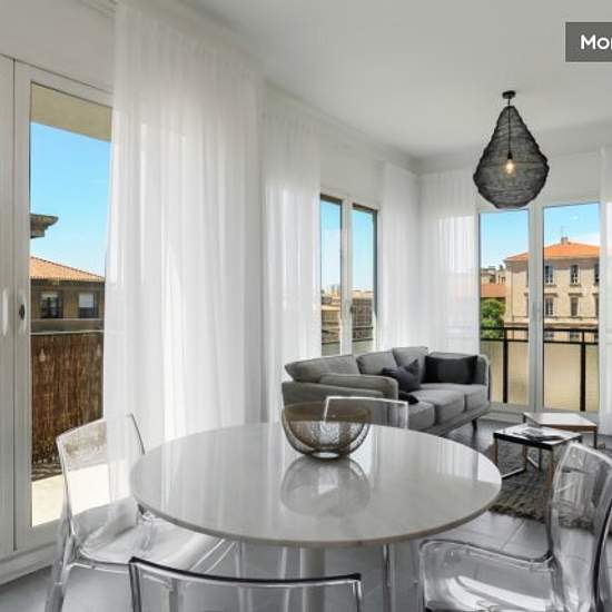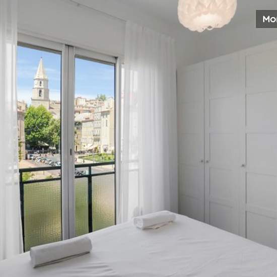 Located in the heart of the 2nd arrondissement, a few steps from the Old Port, opposite the town hall, this beautiful and bright flat can accommodate up to 4 people. Close to shops and transport, this flat is perfect for a stay in Marseille. A warm and welcoming 73 m² flat with balcony and loggia on the 2nd floor with lift of a renovated building, with an exceptional view of the old Hotel-Dieu, the Accoules Church and the mythical Panier district. This flat has been refurbished, air-conditioned and is quiet: - a bright and modern living room...