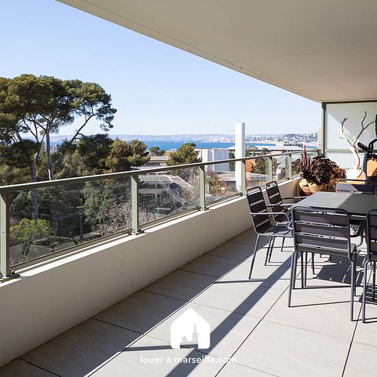 DISPONIBLE A PARTIR DE FIN JUILLET 2025 Au sein d'une résidence neuve nichée au pied des collines de Marseilleveyre, à quelques minutes à pied des plages, découvrez ce magnifique T4 tout confort avec une spacieuse terrasse de 27m2 vue mer et colline, au calme. Prestations de standing et box simple en sous-sol. Il se compose de trois chambres, de deux salles de bains dont une avec baignoire, de deux WC, d'une pièce à vivre chaleureuse colorée et meublé avec élégance, d'une cuisine entièrement équipée spacieuse et bien agencée, d'une grande te...