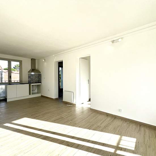 À LOUER - Disponible immédiatement 13013 - SAINT-JUST / Résidence Le Parc des Chartreux Bien entièrement rénové (électricité, plomberie, carrelage, peinture, salle d'eau, wc et cuisine, doubles vitrages, volet roulant électrique) Appartement traversant 3 pièces de 47m2 situé au 2ème étage sur 4 sans ascenceur. Il se compose d'une pièce à vivre de 21 m2 comprenant une partie séjour et une cuisine neuve aménagée et semi-équipée (plaque de cuisson induction et hotte), l'ensemble donnant sur un balcon de 3.60m2 exposé sud. Il dispose de 2 chambr...