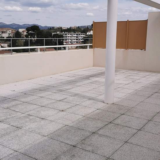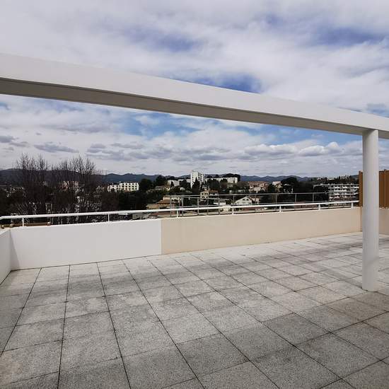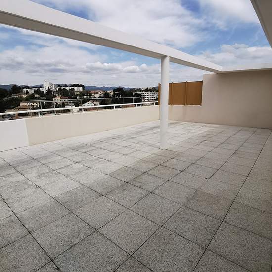 Au 3ème et dernier étage ,superbe appartement lumineux de type 3, d'une surface de 68,46 m2, comprenant un hall d'entrée, un grand séjour ouvert sur une cuisine semi équipée donnant sur une magnifique terrasse de 53 m2 avec vue dégagée , un dégagement avec placard desservant 2 chambres, une salle d'eau avec WC. Ce bien est complété par un double box de 33 m2, en enfilade, conforme aux normes PMR. - Libre le 8 décembre 2025 - Loyer: 1320 EUR CC dont 272 EUR de provisions pour charges avec régularisation annuelle - Caution: 1048 EUR - Honorair...
