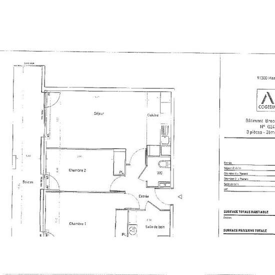 MASSY - Atlantis neighborhood within a recent residence. We offer this T3 apartment located on the 2nd floor with elevator. It comprises an entrance with a closet, a fitted kitchenette (sink, 4-burner hob, cabinets and base units) open to the living room with access to a 15 m² balcony, two bedrooms with closets, a bathroom fitted with a double sink, and a separate WC. The property includes an underground parking space.