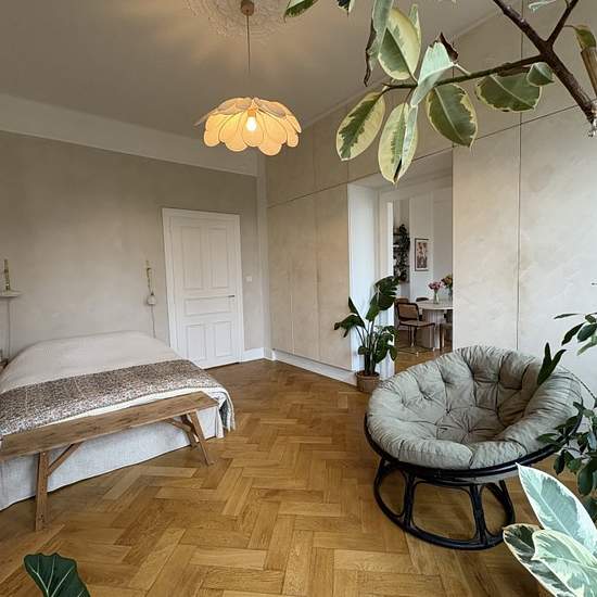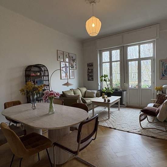 APPARTEMENT 3 PIECES MEUBLE D'EXCEPTION. PRESTATION DE HAUT STANDING ! A deux pas de la gare, dans un immeuble de caractère au 4ème étage, vous découvrirez ce 3 pièces d'exception entièrement meublé avec goût comprenant une entrée, cuisine séparée et entièrement équipée avec accès au 1er balcon donnant sur cour arrière, séjour avec accès au second balcon donnant sur l'avant, deux chambres dont une grande avec placards intégrés, salle d'eau avec douche à l'italienne et W-C., en sous-sol une cave. Materiaux de qualité, coup de coeur assuré. LI...