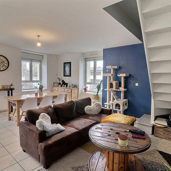 En plein centre de Montfaucon-en-Velay, de ses commerces, du centre médical, des écoles et du marché hebdomadaire, venez découvrir ce très bel F3 en duplex meublé, au première étage, d'environ 60 m² habitables. Il se compose d'une cuisine semi-équipée, aménagée ouverte sur le séjour/salon, d'un WC et d'un balcon. A l'étage supérieur 2 chambres, et une salle de bains avec WC. Vous disposerez aussi d'un grenier, une cave privative et une cave commune. Référence annonce : 307 Sous la responsabilité éditoriale de Nicolas SABY, agent commercial ,...