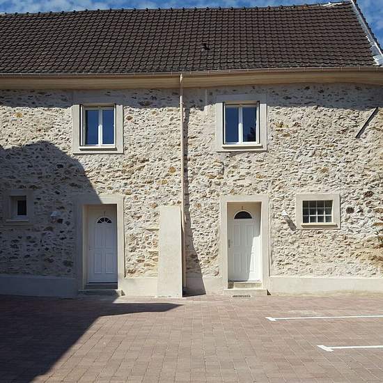 Appartement TRIPLEX MOUROUX. Appartement de type triplex d'une surface de 58,93 m2 comprenant : une entrée donnant sur un coin cuisine aménagée et équipée ( une hotte aspirante), un WC. Au 1er étage : un palier desservant une chambre avec placard, une salle de bains, un WC. Au 2ème étage : une chambre avec placard. Un emplacement de stationnement libre.