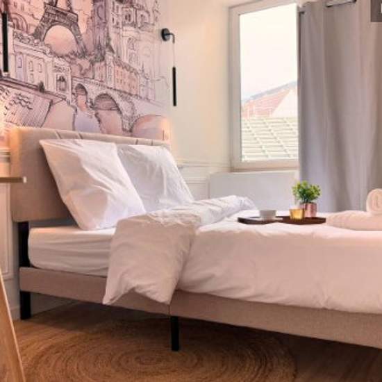 Suite Coton – by Maison Barfusser Pour séjours entre 1 et 10 mois – ÉLECTRICITÉ/INTERNET INCLUS – 48 m² – 2 chambres, 4 couchages max Rue des Franciscains – centre historique de Mulhouse Points forts: LAVE LINGE - FOUR - LAVE VAISSELLE - 2 ESPACES DE TRAVAIL avec prises ethernet - 2 DRESSINGS XXL - 3 PARKINGS * Équipements et services - AUCUN ABONNEMENT A SOUSCRIRE, prêt à vivre - Internet et WIFI très haut débit stable - Réseau internet privatif dédié à la suite - Isolation neuve et chauffage performant - Accès sécurisé et autonome - Matéri...