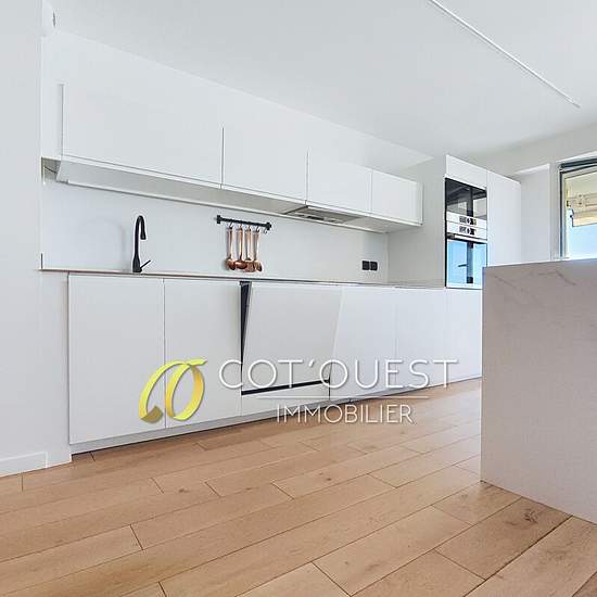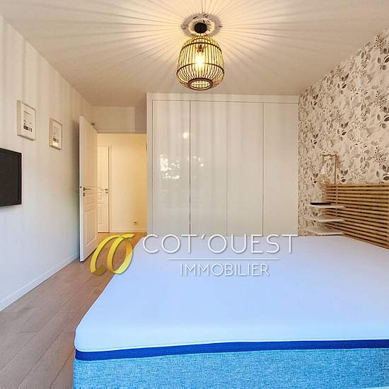NICE OUEST - LANTERNE Furnished rental for 12 months. In a recent residence with a swimming pool on the heights of Nice West in a residential neighborhood, superb through three-room apartment of 77 m²: living room and fitted open-plan kitchen opening onto a 17 m² south-facing terrace with a very nice sea view, numerous storage spaces, a shower room, two bedrooms opening onto a balcony with a room used as a laundry room, two outdoor parking spaces and the possibility of a closed garage for €150 per month extra. Air conditioning and electric s...
