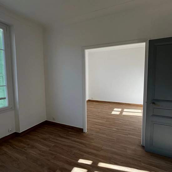 Small building in Nice, in a cul-de-sac. Very pleasant 3-room apartment, newly renovated. Furnished kitchen, electric heating, electric water heater. Show phone number