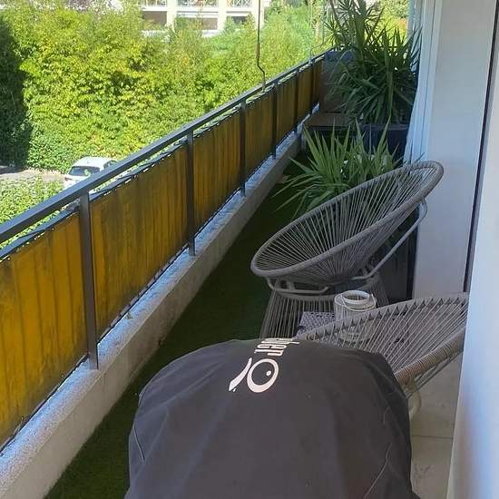 Top floor in a private park spacious furnished 3-room apartment - very bright prestigious building - absolute tranquility unobstructed view easy parking within the residence basement garage box cellar available on November 14 Show phone number