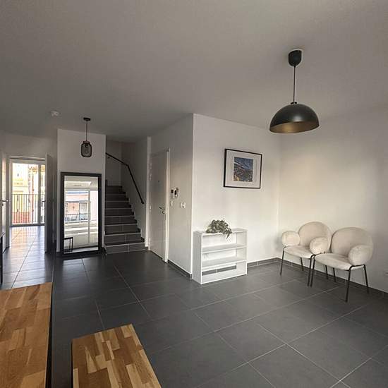 Port district, rue Scaliero, three-room duplex on the top floor with terrace for rent, 64.6 m², in a recent residence with a parking space in the building. The apartment comprises on the ground floor an entrance, a living room with open fitted kitchen, a bedroom with its shower room and WC, a separate WC, a storage nook, and a 6 m² terrace. Upstairs, a bedroom with shower room and a small dressing area. Unfurnished lease. Rent (excl. charges): €1,650 Charges: €150 Security deposit: €1,650 Show phone number