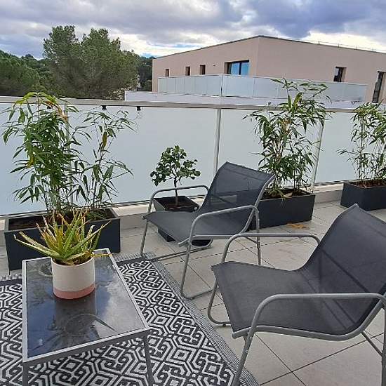 Résidence récente Perspectiv' 72 Rue Paul Nicolas à Nîmes Magnifique T3 au 3ème étage de 67.14m² avec terrasse de 18.24m², exposition Sud. L'appartement se compose d'un séjour - cuisine équipée de 27.90m² , de deux chambres de 13.64m² et 11.29m², d'une salle de bain et d'un WC séparé. Un parking sous-sol inclus. A proximité de l'avenue Kennedy et des arrêts de Tram Bus ligne T2 « les Amandiers » et « Kennedy ». Loyer de 853,41 euros charges comprises (dont 90 euros de charges). Les honoraires sont de 420 euros (dont 120 euros pour l'état des...