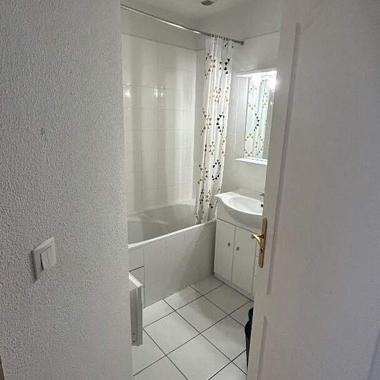 Appartement de type 2 bis comprenant une entrée avec placard, une pièce de vie, cuisine ouverte aménagée et équipée (frigo, plaque, hotte, lave-vaisselle), un WC, une chambre avec placard, un bureau et une salle de bains. Parking extérieur privatif Provisions sur charges ; Communs et ordures ménagères Disponible début février
