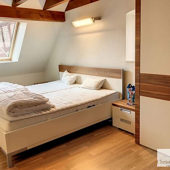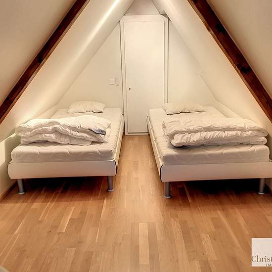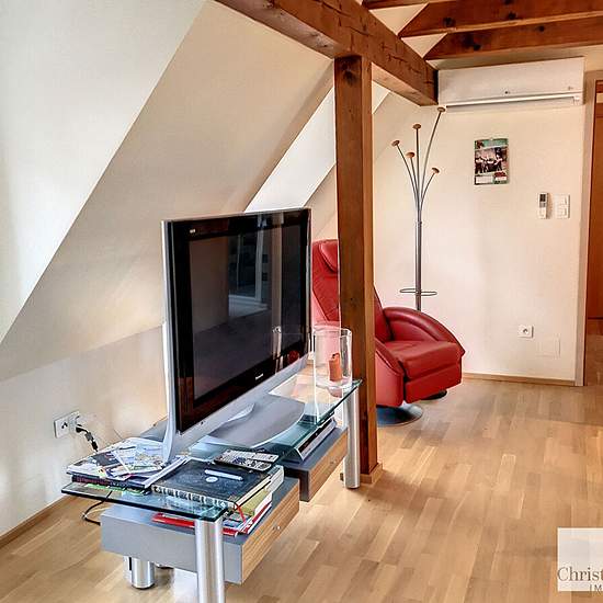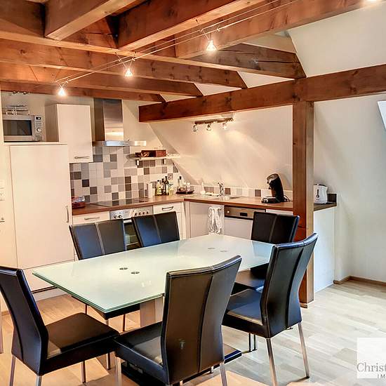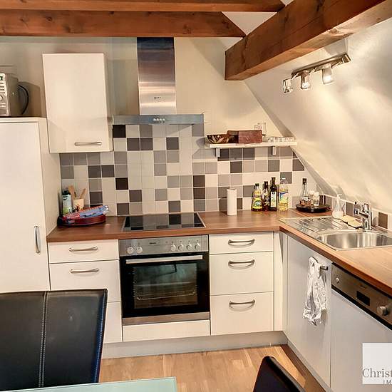 OBERNAI : situé à l'entrée du centre ville, venez visiter cet appartement 3 / 4 pièces mansardé en duplex, entièrement meublé de 53.35 m² habitable, aux belles prestations et au 2ème étage sans ascenseur. Il se compose d'une entrée avec un placard, une cuisine aménagée et équipée (mobilier, hotte, plaque, four, lave vaisselle et réfrigérateur) ouverte sur le séjour, une chambre avec dressing, une salle de bain composée d'une baignoire, d'une douche et d'un WC. À l'étage, deux pièces ouvertes avec 4 lits. À proximité, vous pourrez garer votre...