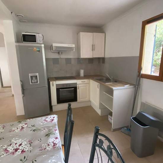 Furnished apartment for rent. Furnished apartment located in a house divided into 3 units, this three-room apartment consists of an entrance, living room with kitchenette, 2 bedrooms, shower room with toilet. Terrace. Private parking space. Located in a large family estate between Toulon and Ollioules with motorway access nearby. Water and electricity included in the charges.