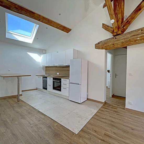 Venez découvrir ce charmant appartement refait à neuf au pied du métro d'Oullins, vous serez à proximité de tous les commerces. L'appartement comprend un espace jour avec cuisine entièrement équipée : Four, micro-ondes, plaque induction, hotte, lave-vaisselle, réfrigérateur et congélateur. Le coin salon est ouvert avec poutres apparentes. Appartement très charmant avec une belle hauteur sous plafond. Vous pourrez retrouver deux chambres, avec dressing, une salle d'eau avec douche à l'italienne, ainsi qu'un WC suspendu séparé. Loyer : 980€ eu...