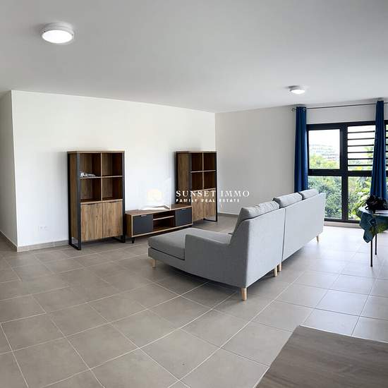 SUNSET IMMO | A LOUER T3 NEUF PAPEETE - FARIIPITI Dans une jolie résidence NEUVE et sécurisée avec ascenseur, proche de la ville et des commerces, dans un environnement calme, venez découvrir ce bel appartement meublé et moderne de 88 m2 habitables situé au 4eme étage, qui comprend : - deux chambres climatisées avec placards et penderies - une salle d'eau commune avec W.C - un W.C indépendant - une cuisine équipée ouverte sur un salon climatisé - une agréable terrasse de 16 m2 avec vue - un coin buanderie avec un lave-linge et un sèche linge...