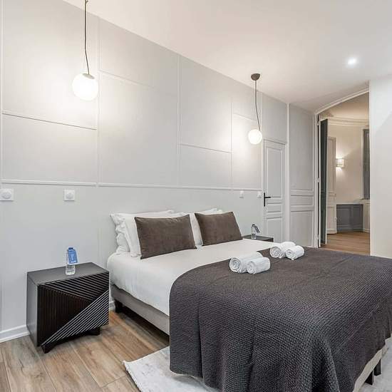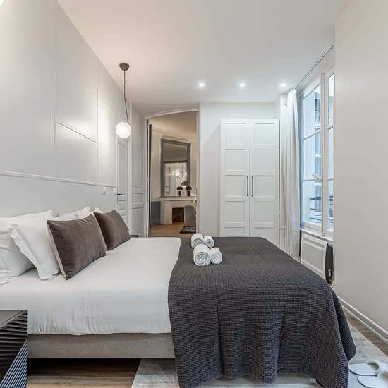 [EN] This charming two-bedroom apartment invites you to experience Parisian glamour in the city’s centre. Crafted by our local maestro of interior design, each element has been orchestrated to resonate with the enchantment of the surroundings. Start your day by enjoying a delicious morning croissant with a piping hot cup of coffee and all the essentials from the kitchen. Located only a few minutes away from the magnificent Palais Garnier Opera, you will find some of the city's most treasured buildings and the iconic Place Vendome with its pr...
