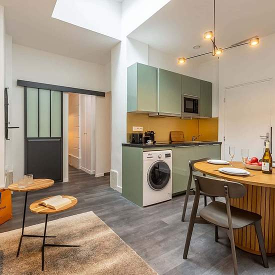 [EN] Here in the first arrondissement, the two-bedroom Monsigny VI Sweett apartment introduces you to Parisian modern charm and elegance. With bold colours and funky patterns, our local interior designer has created a space that the whole family will love. Sunny yellow accents and quirky accessories give this ground-floor apartment character. The fully equipped kitchen has everything you need for gourmet dining at home. Nestled along the picturesque banks of the River Seine, you and your loved ones will be enveloped by magnificent architectu...
