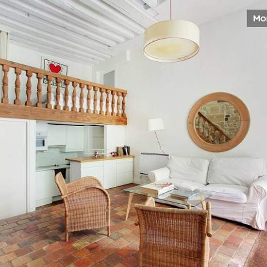 Charming 50 m² duplex loft in the heart of the Marais district in central Paris. This bright, quiet flat features a large, comfortable living room, a fully-equipped kitchen, a workspace, and a modern shower room. You will also enjoy a pleasant outdoor area overlooking a paved courtyard. Ideally located within walking distance of trendy restaurants and designer boutiques, this apartment is perfect for a business trip or as a pied-à-terre. Services included in rent & charges: - Water - Electricity - Heating - Internet A security deposit of ...