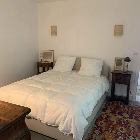 A propos de ce bien Appartement de 90 m2, au premier étage avec ascenseur dans petite copropriété de 1975. Situé au Quartier Latin dans une rue très calme, entre le Panthéon et la Place de la Contrescarpe. Double exposition sur grand jardin et 50 m2 de terrasse privative. 2 chambres avec salle de bains, baignoire et bidet, 2 WC dont un séparé. Grands placards et penderies. Living-room avec canapé d’angle convertible. Table pour salle à manger pour 8 personnes. (Rallonges disponibles). 3 places de parking Nombreux marchés : rue Mouffetard, P...