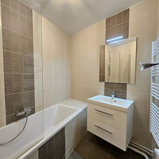 TROIS PIÈCES de 71m2 situé en Rez-de-Jardin avec ascenseur côté cour intérieure d'une résidence récente avec gardien au 31 rue Claude Bernard. Il comprend une entrée avec placard, un séjour donnant sur un extérieur , une cuisine US aménagée et semi équipée, un dégagement, deux chambres dont une avec placards, une salle de bains et un WC indépendant. Chauffage mixte. Une place de parking en sous-sol et une cave. Chauffage et eau chaude individuels électriques.