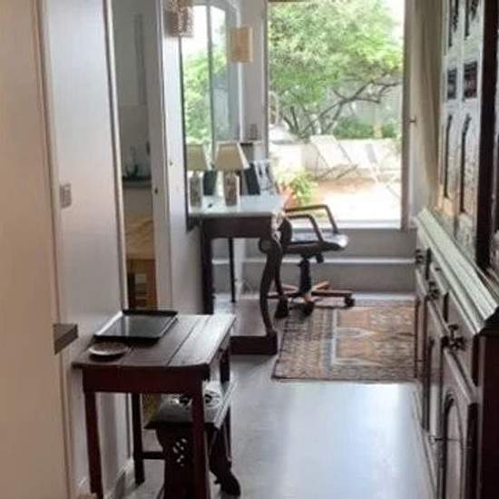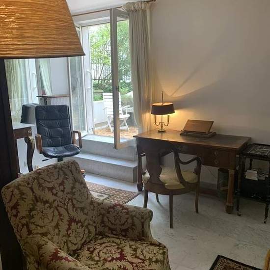 Appartement de 90 m2, au premier étage avec ascenseur dans petite copropriété de 1975. Situé au Quartier Latin dans une rue très calme, entre le Panthéon et la Place de la Contrescarpe. Double exposition sur grand jardin et 50 m2 de terrasse privative. 2 chambres avec salle de bains, baignoire et bidet, 2 WC dont un séparé. Grands placards et penderies. Living-room avec canapé d’angle convertible. Table pour salle à manger pour 8 personnes. (Rallonges disponibles). 3 places de parking Nombreux marchés : rue Mouffetard, Place Monge et Place M...