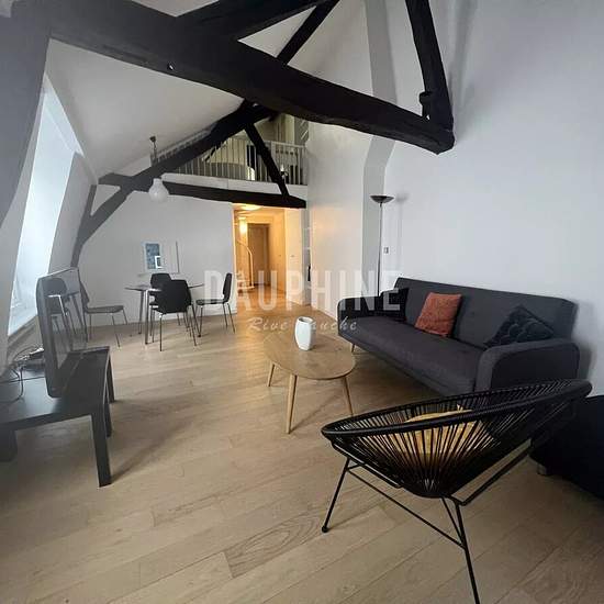 Dans un bel immeuble, Magnifique appartement meublé en Duplex comprenant une entrée, un séjour, une cuisine séparée, une chambre, une salle d'eau, un wc/ A l'étage un coin bureau et une chambre. Belles prestations , beau volume . surface au sol 81 m2 / Carrez 67 m2 Un complément de loyer incus dans le loyer est justifié par la surface au sol supérieure à la surface carrez vue dégagée, beau volume.