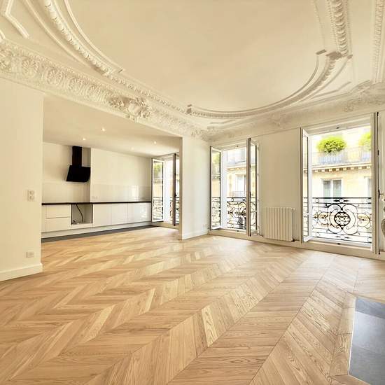 PARIS 8th Avenue Montaigne - Rooms 80m² IN THE HEART OF THE GOLDEN TRIANGLE - THREE-ROOM APARTMENT of 89.30 m² on the 4th floor with elevator of a stately building at 4 rue Robert Estienne. It is composed of a spacious entrance, a living/dining room, a hallway with a closet, 2 bedrooms facing the inner courtyard, including a master suite, a bathroom with WC and a separate WC. Numerous storage spaces are present. Individual gas heating and hot water. A cellar in the basement.