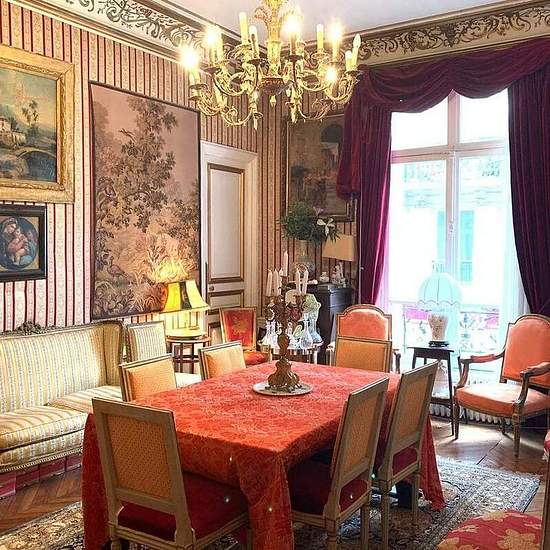 Champs Elysees, Saint Honore Street with its fashion shops, famous Dior, boutiques creates an unforgettable atmosphere of glamour and luxury. Very good location! !! The luxurious apartment of 200 m is located on the 1st floor of the 19th century building. There is a hall entrance, a living room, a dining room, a music lounge with a piano, 4 bedrooms that sleep 7-8 people, a kitchen, 2 bathrooms, and 2 toilets. There is a carpet surface there. Antique furniture, numerous paintings and statues. The building is equipped with an elevator. The ...