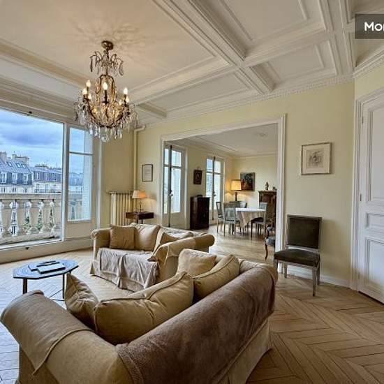 This charming, spacious and bright three-room apartment is approximately 100 m² (1,076 sq ft) and overlooks Boulevard Raspail. It is located in the 14th arrondissement of Paris, just off the Vavin metro station. Sleeps 4 people. Tastefully decorated in period style. The apartment is on the 5th floor, with a small elevator, of a beautiful, typically Parisian secured building. It offers a large living/dining room, a fully equipped kitchen, 2 bedrooms and 2 bathrooms. The double-glazed windows let you enjoy the peace and quiet of the apartment...