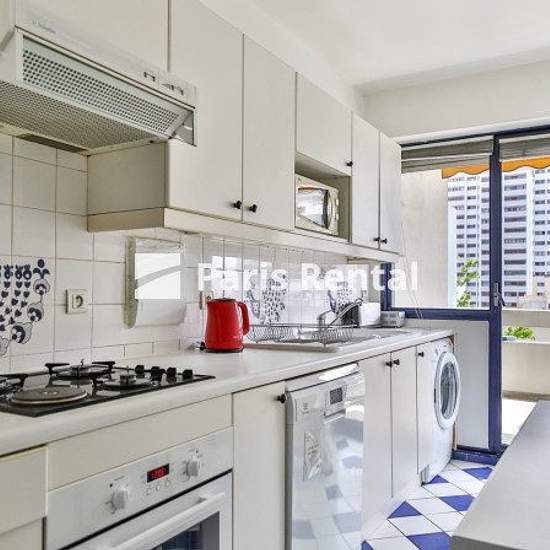 Appartement n° 60181Pas de colocationCe calme appartement meublé de 2 chambres et 1 salle de bains se situe dans le ciel, de son huitième étage surplombant le Paris du 15ème arrondissement et son développement moderne. Un long balcon permet de s'installer confortablement dehors et de faire pousser quelques fleurs pour ceux qui ont l'âme verte. Un concierge veille sur l'immeuble.A 10 minutes de marche du logement, se trouve le cadre verdoyant du Square Alleray Labrouste St. Amand, du Jardin Pierre-Adrien Dalpayra, du Square du Père-Plumier et...
